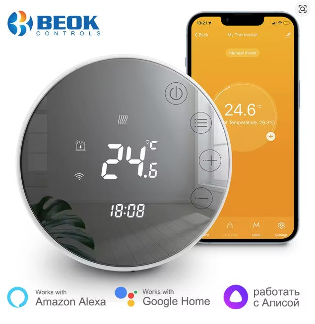 Termostato inteligente Wi-Fi com controlo remoto via aplicação móvel, compatível com Alice, Alexa e Google Home. Ideal para sistemas de aquecimento de piso radiante elétrico ou de água, oferece programação flexível e ajuste automático de temperatura. Reduz consumo energético através de gestão inteligente do aquecimento. Instalação simples e interface intuitiva para conforto e eficiência energética otimizados.