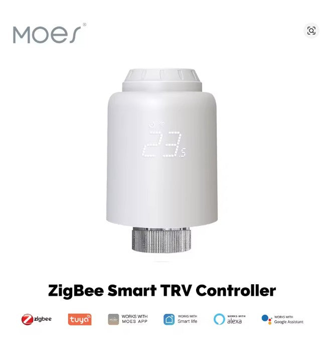 Válvula atuadora termostática inteligente com tecnologia Zigbee 3.0, compatível com Alexa para controle por voz. Equipada com sensor externo de temperatura, permite otimizar o conforto térmico em cada divisão de forma autónoma. O termostato inteligente regula precisamente a temperatura do radiador, reduzindo consumo energético e custos de aquecimento. Instalação simples, funcionamento fiável e integração perfeita em sistemas de automação residencial modernos.